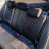 Coprisedili realizzati in ecopelle automobilistica nera di alta qualità e con Alcantara per auto goffrato al centro.